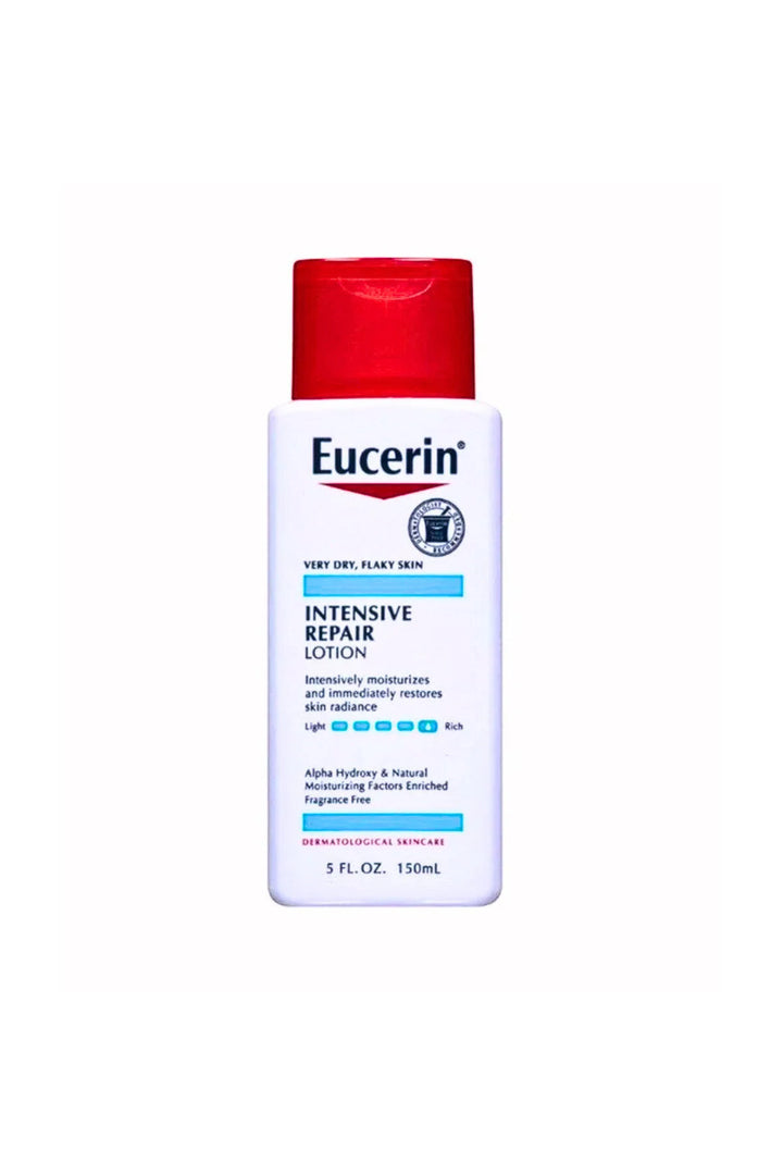 Eucerin Intensive Repair Lotion For Very Dry Skin, Moisturizes Very dry Skin. expoliates the Skin. nourishes very Dry Rough And Dull Skin. Patented Formula Combines a Moisturizer Naturally Found in the Skin with Alpha Hydroxy to Help Intensively Hydrate & Smooth Skin, Gently Exfoliates to Promote the Appearance of Dry, Rough Skin Fragrance Free, Helps Avoid Clogging Pores
